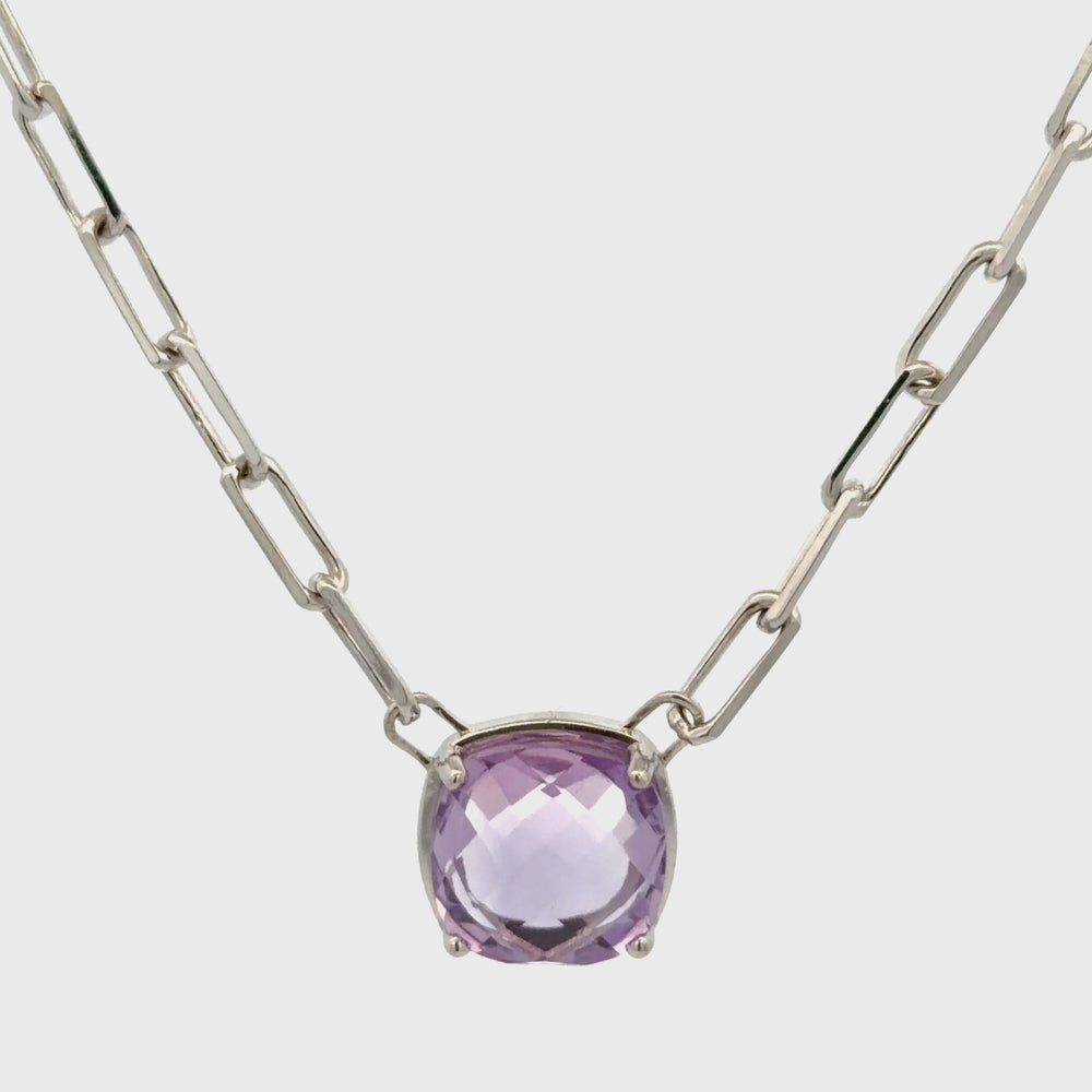 Pink Amethyst Sterling Silver Chain Link Necklace