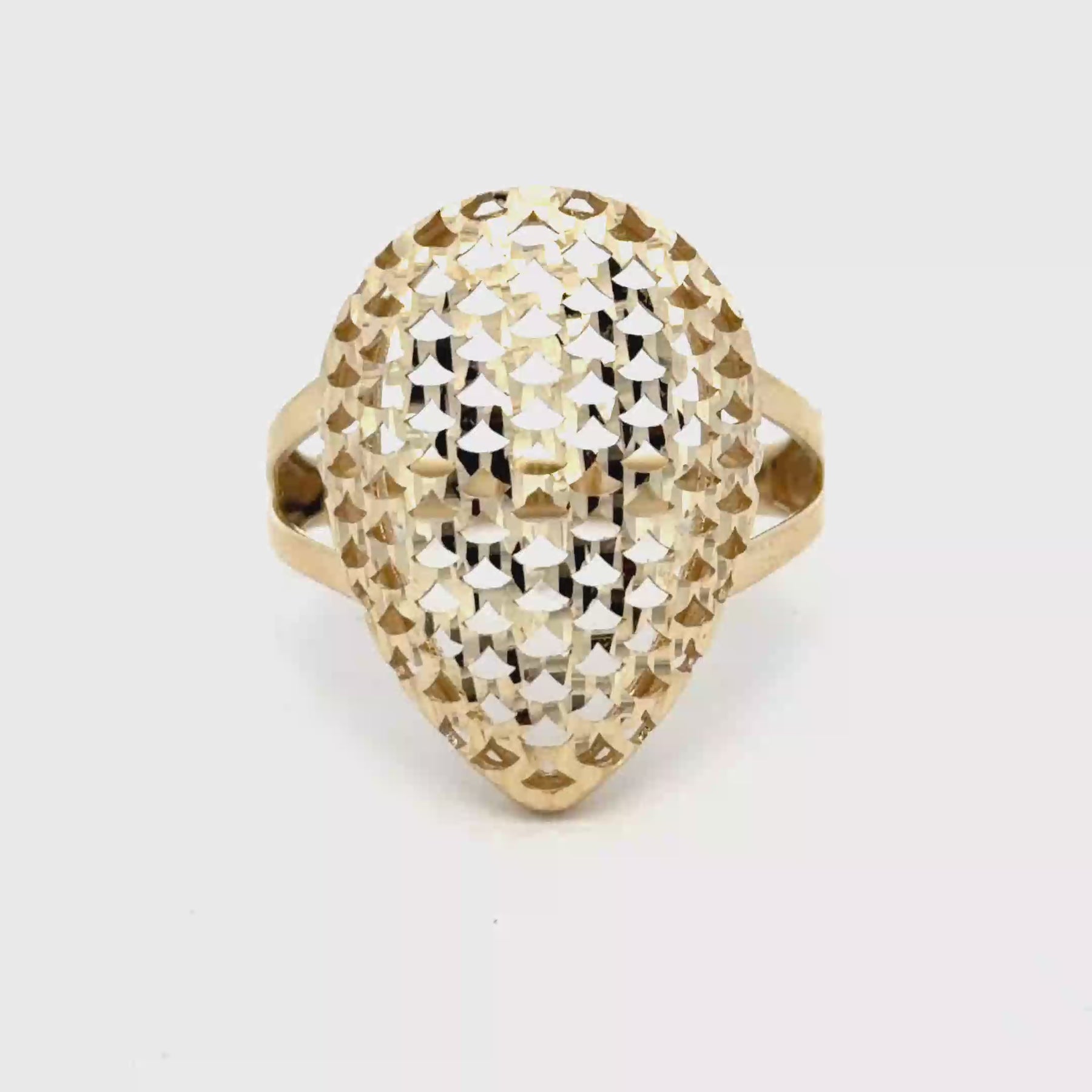 Vintage-Inspired High-Polish Yellow Gold Textured Cocktail Ring